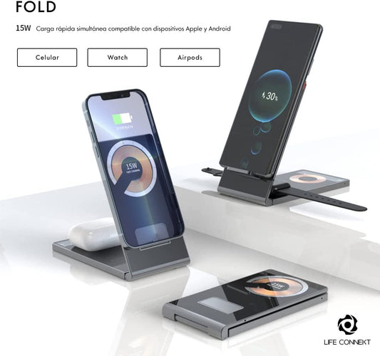 Cargador Inalámbrico Magnético 3 en 1 Compatible 15W